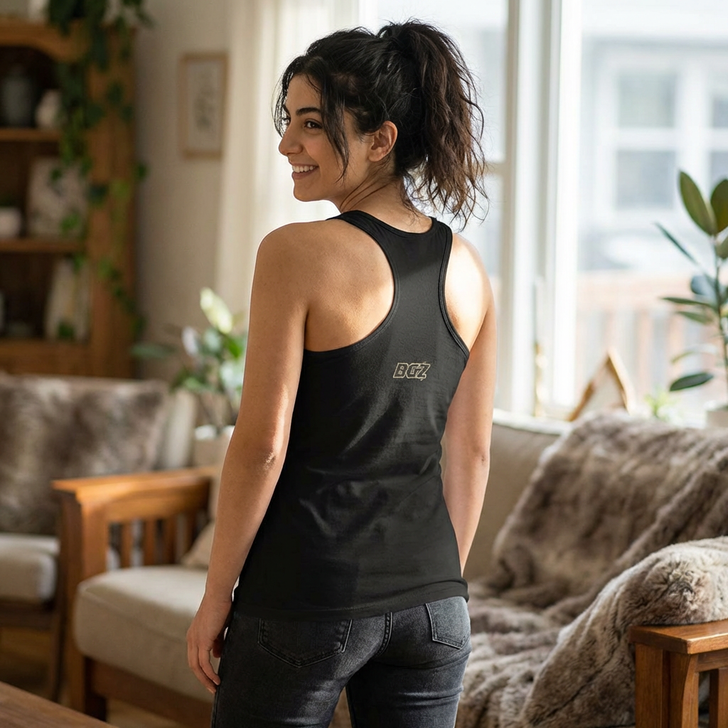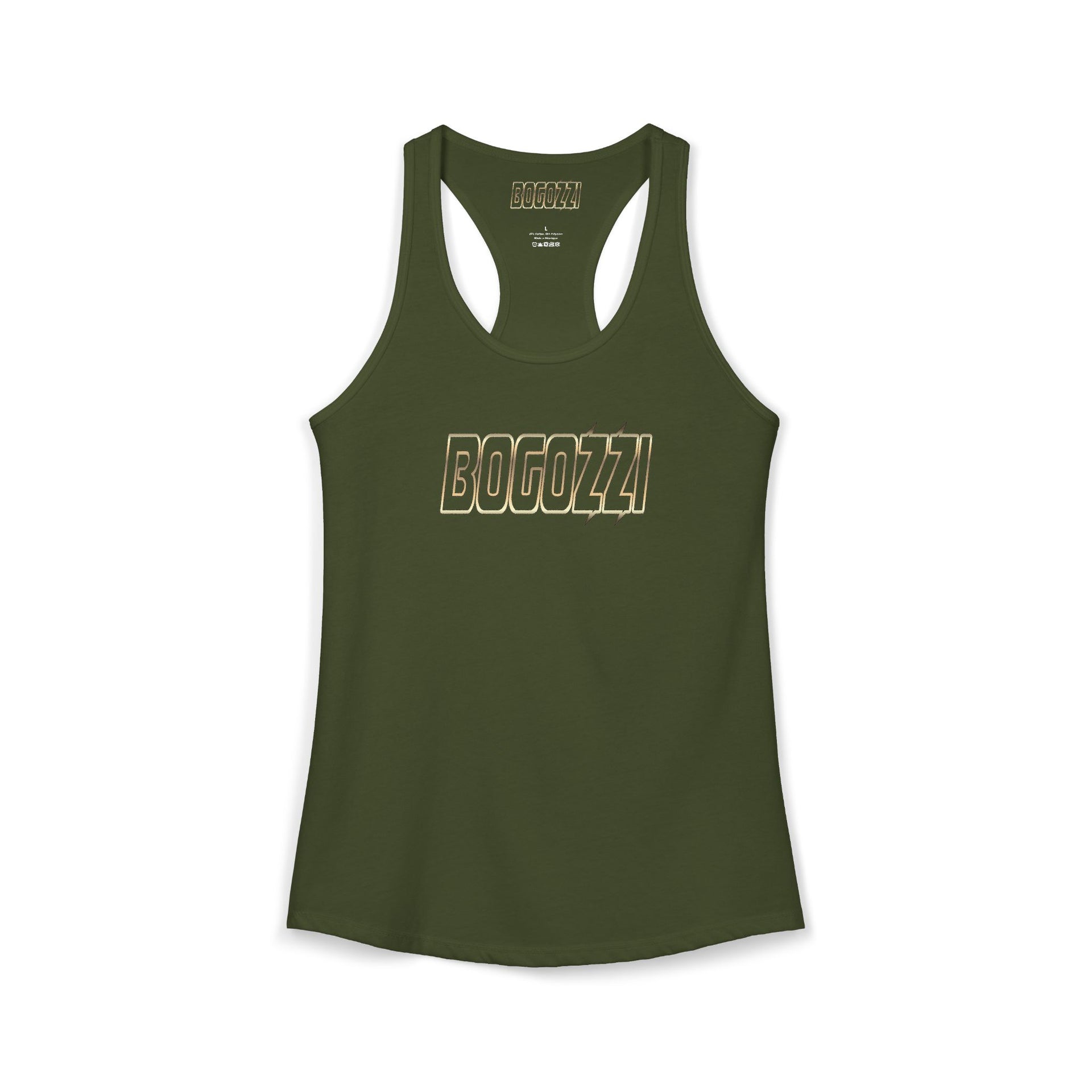 BOGOZZI - Glimmer Gold Graphic Women's Racerback Tank — Versatile Resilient & soft