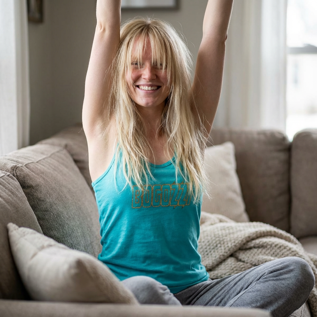 Bogozzi's glimmering gold racerback tank will inconspicuously gravitate eye your way & bring quiet confidence to everyday movement. Lightweight and luxuriously soft, it drapes perfectly on the shoulders with a sporty scoop neck and a cut that flatters the shoulder line and the racerback cut is everything, let's just say onlookers or significant others will not be disappointed. This tank is easy to wear for workout sets, lazy mornings, errands, or something more intimate at night if you like sleeping comfortably & look good doing it. The branded, no-tag neck print and subtle graphic on the back act like a small signature—an attention-grabbing detail that reads like a personal emblem rather than loud branding. It moves with you, holds its shape thanks to side seams, and stays comfortable against skin with a tear-away label. Slip it on and feel pulled-together without trying: a simple, polished layer that complements active routines and relaxed evenings alike. Pick your style with 14 different eye catching color options.