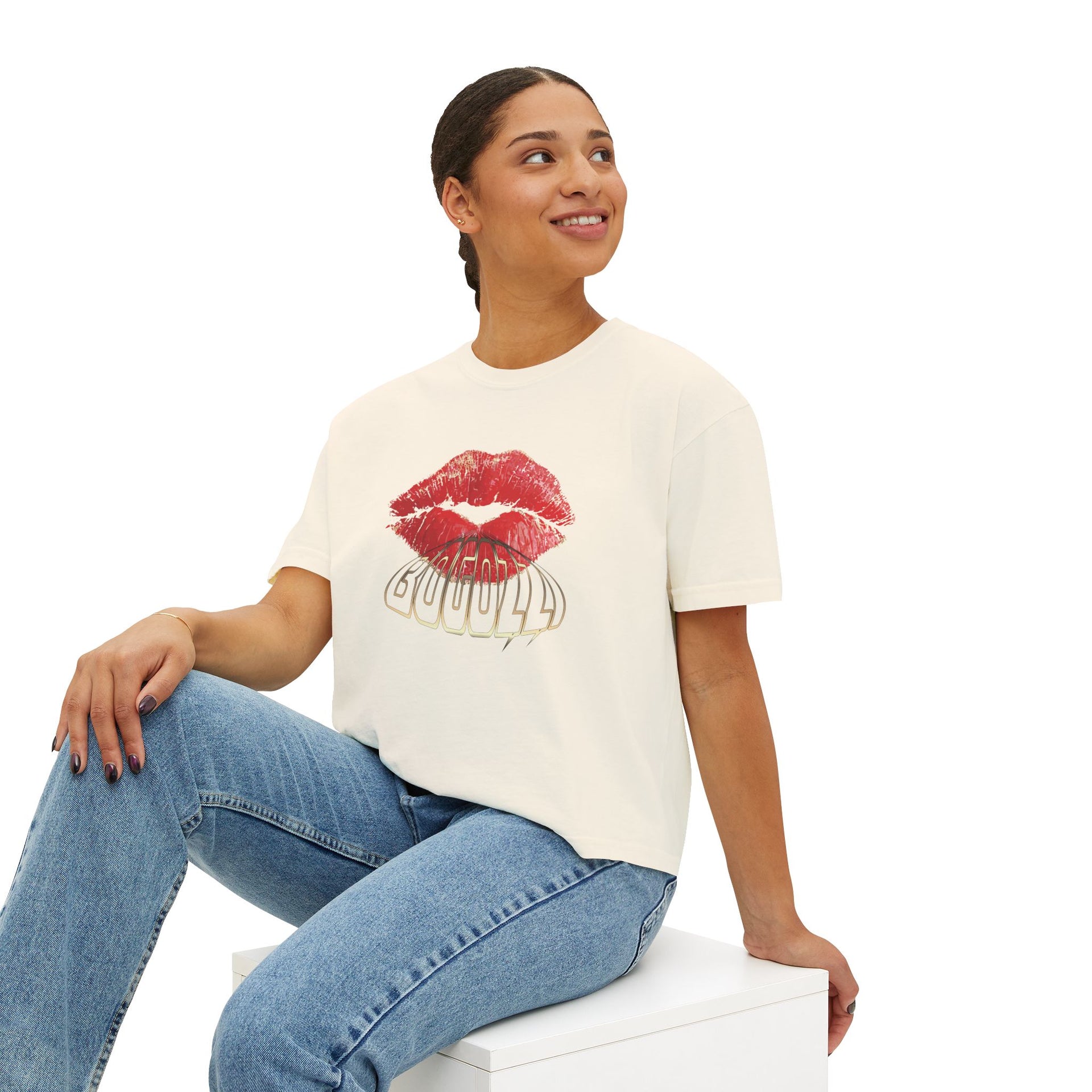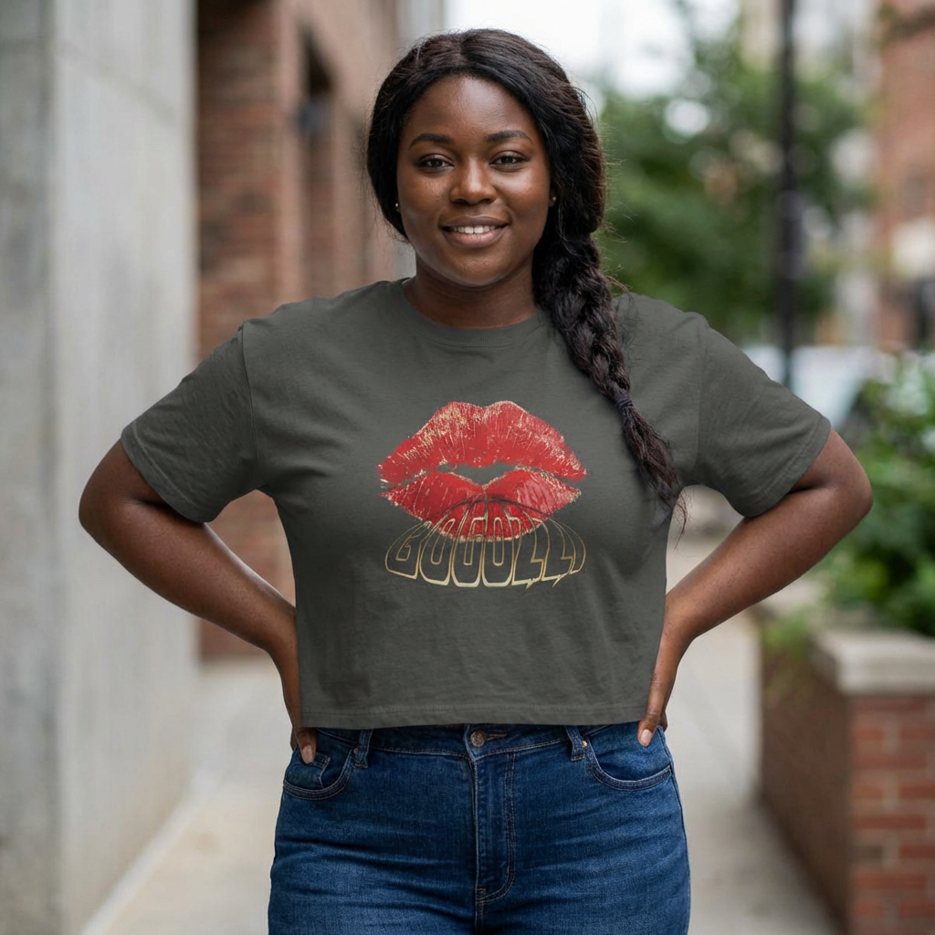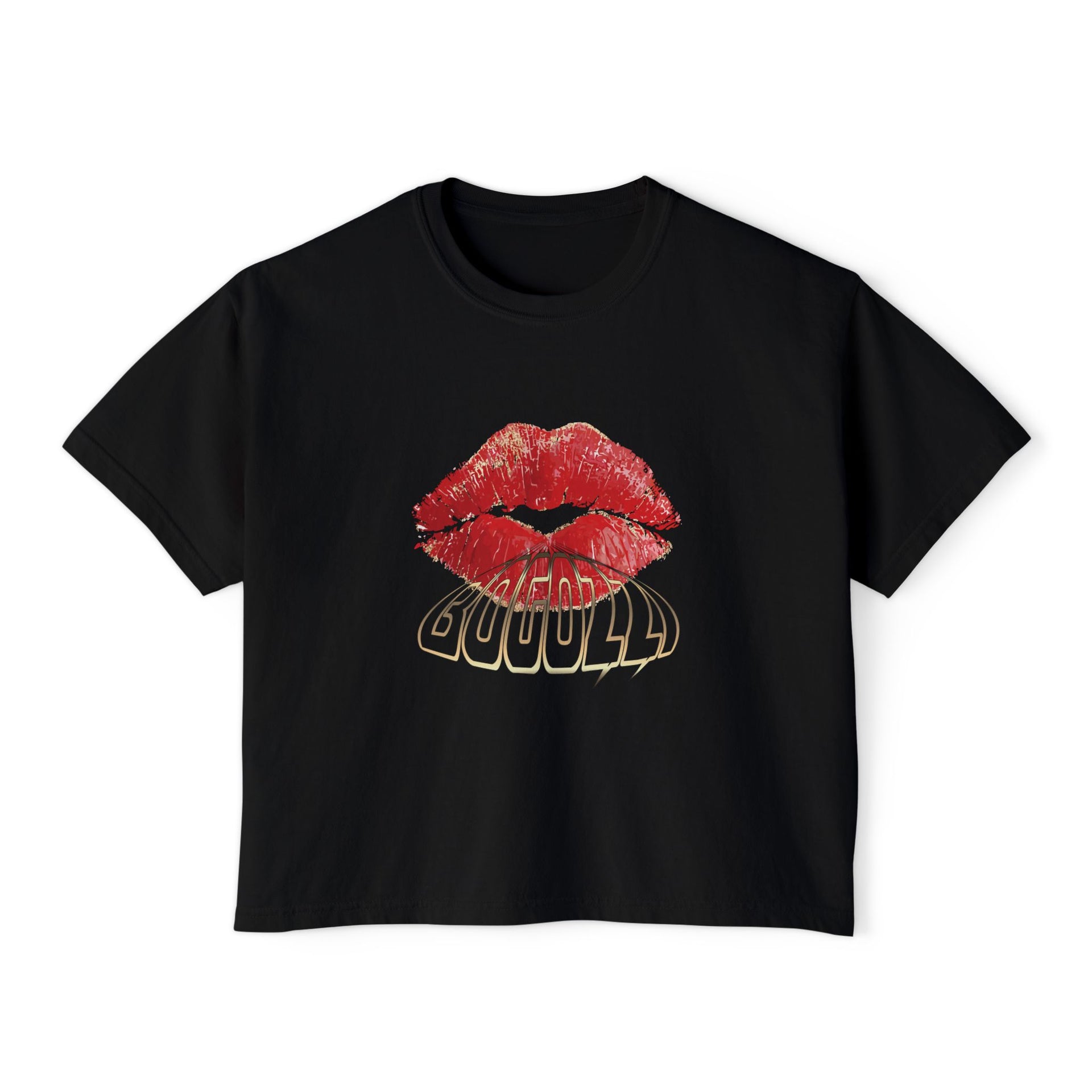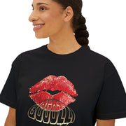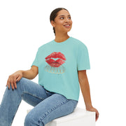 This boxy tee brings a playful, confident edge to everyday wear. The bold red lips with a gold kiss graphic reads like a wink—flirty without shouting—so you can move through crowded rooms or quiet cafes feeling mischievous and comfortably put-together. The cropped, boxy silhouette skims the waist and hides the extra winter fluff while keeping lines modern and relaxed. Wear it with high-waisted jeans, a slip skirt, or layered under a blazer for a look that’s equal parts cozy and cheeky. The pigment-dyed finish gives a lived-in, vintage warmth that softens the graphic and adds quiet personality. Set your mood with the variety of different color options available.