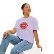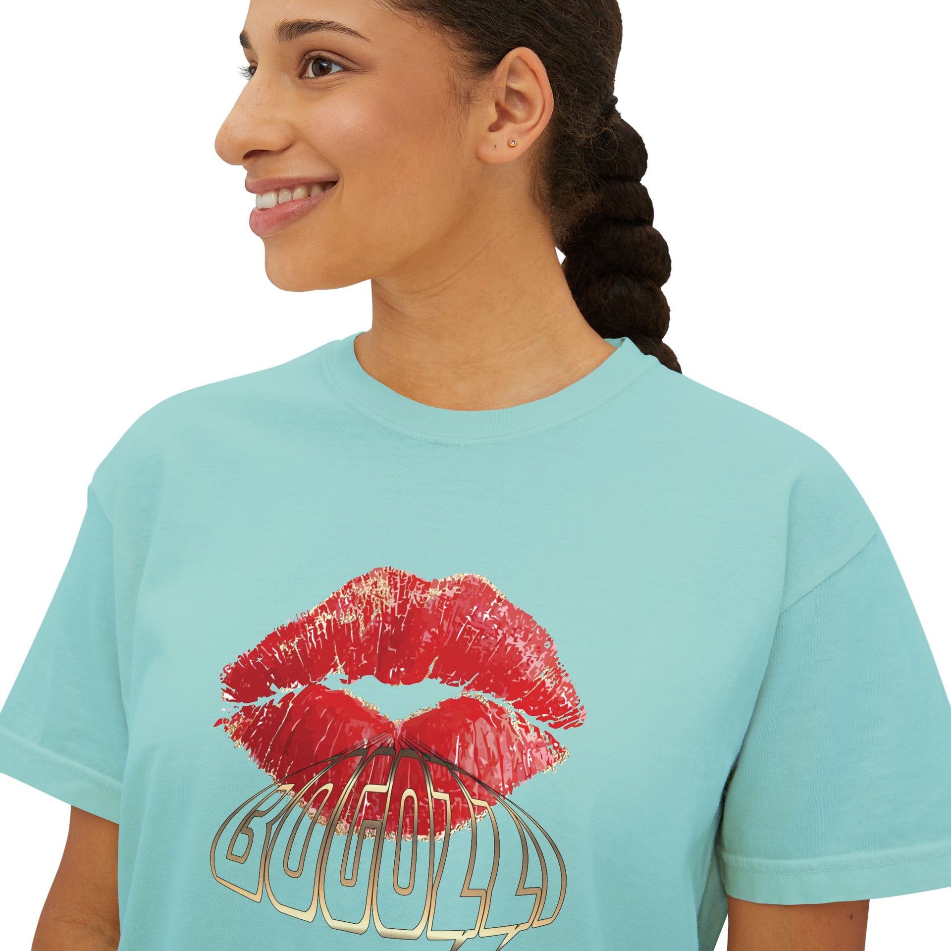 BOGOZZI - Blown Away Kiss Graphic - Boxy Waist Crop Tee