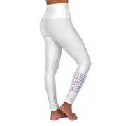 High Waisted (White) Yoga Leggings - BOGOZZI Electric Cotton Candy Vibrant Gradient Print